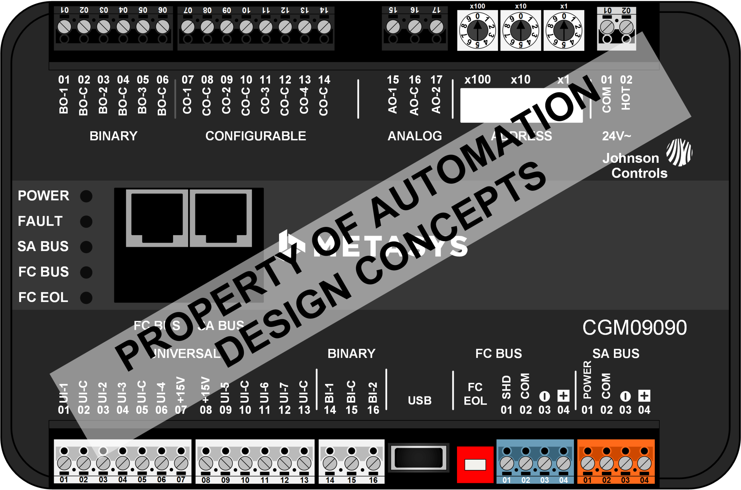 VISIO STENCIL – BACNET MS/TP OR JOHNSON N2 CONTROLLER – 7UI, 2BI, 3BO, 4CO, 2AO